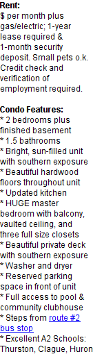 MI 48105. For more information please contact Arbortown Properties by phone